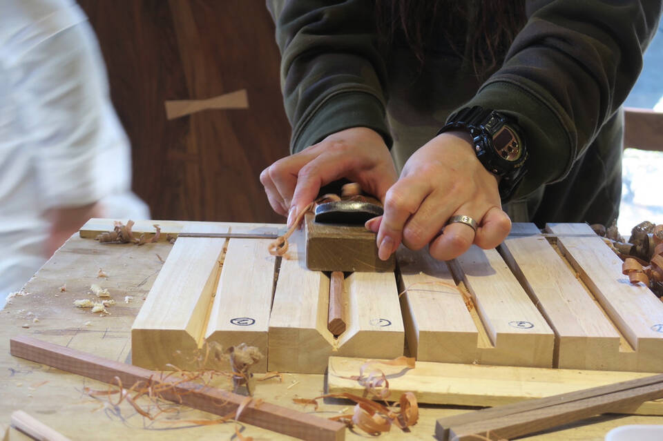 刃物が木を削る音、香り、木屑が舞う中、職人の情熱や技術を肌で感じながらお楽しみ下さい。